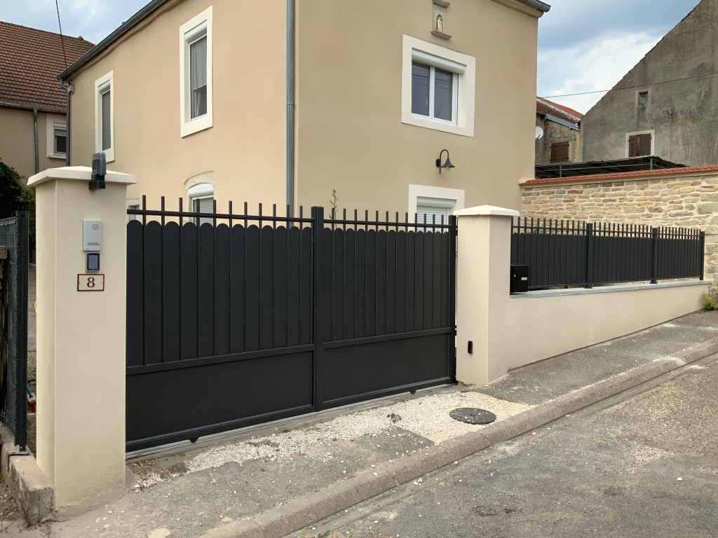 - Portail coulissant : pratique pour les grandes entrées, motorisable.